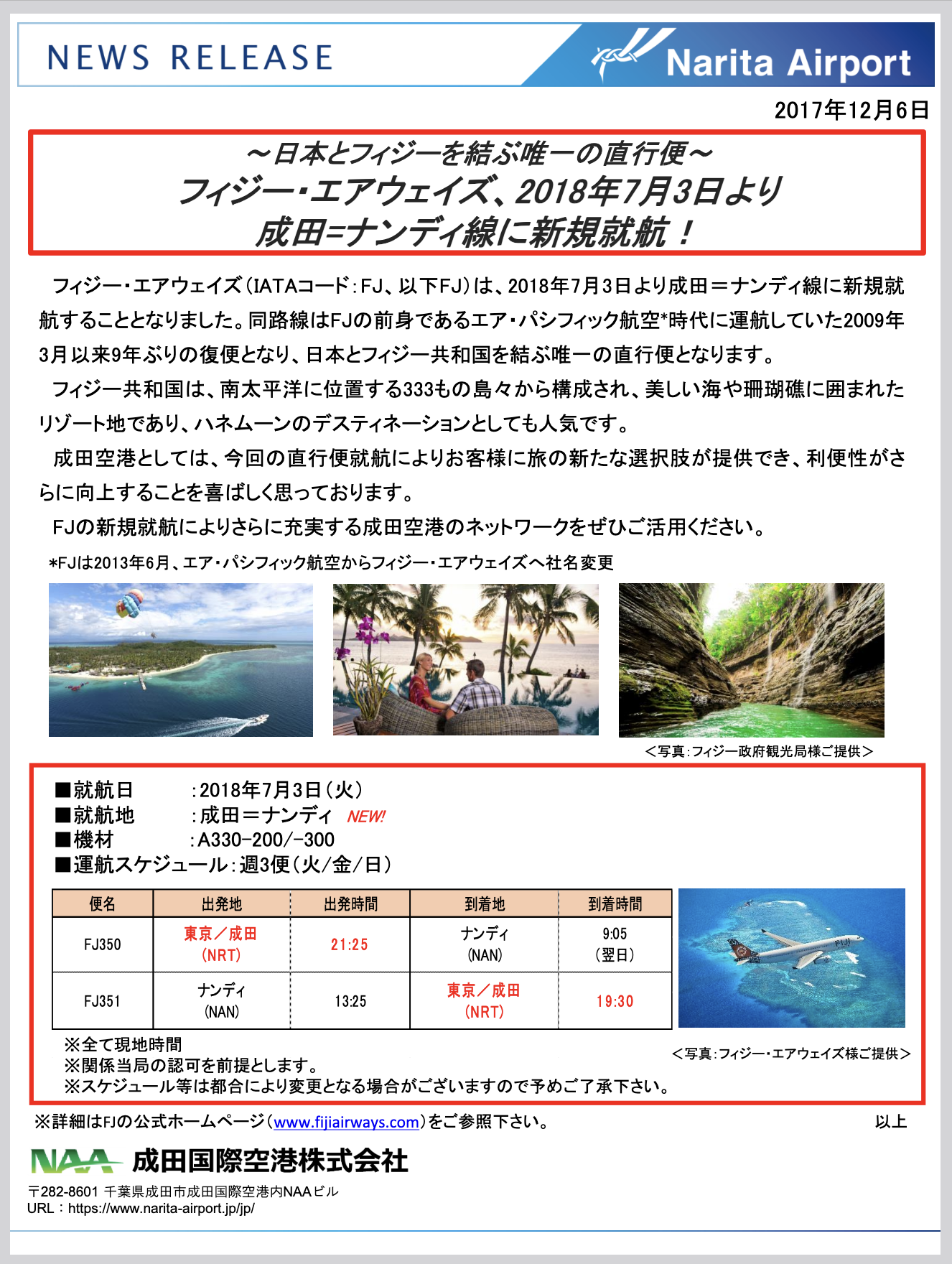 成田〜ナンディ線は2018年就航