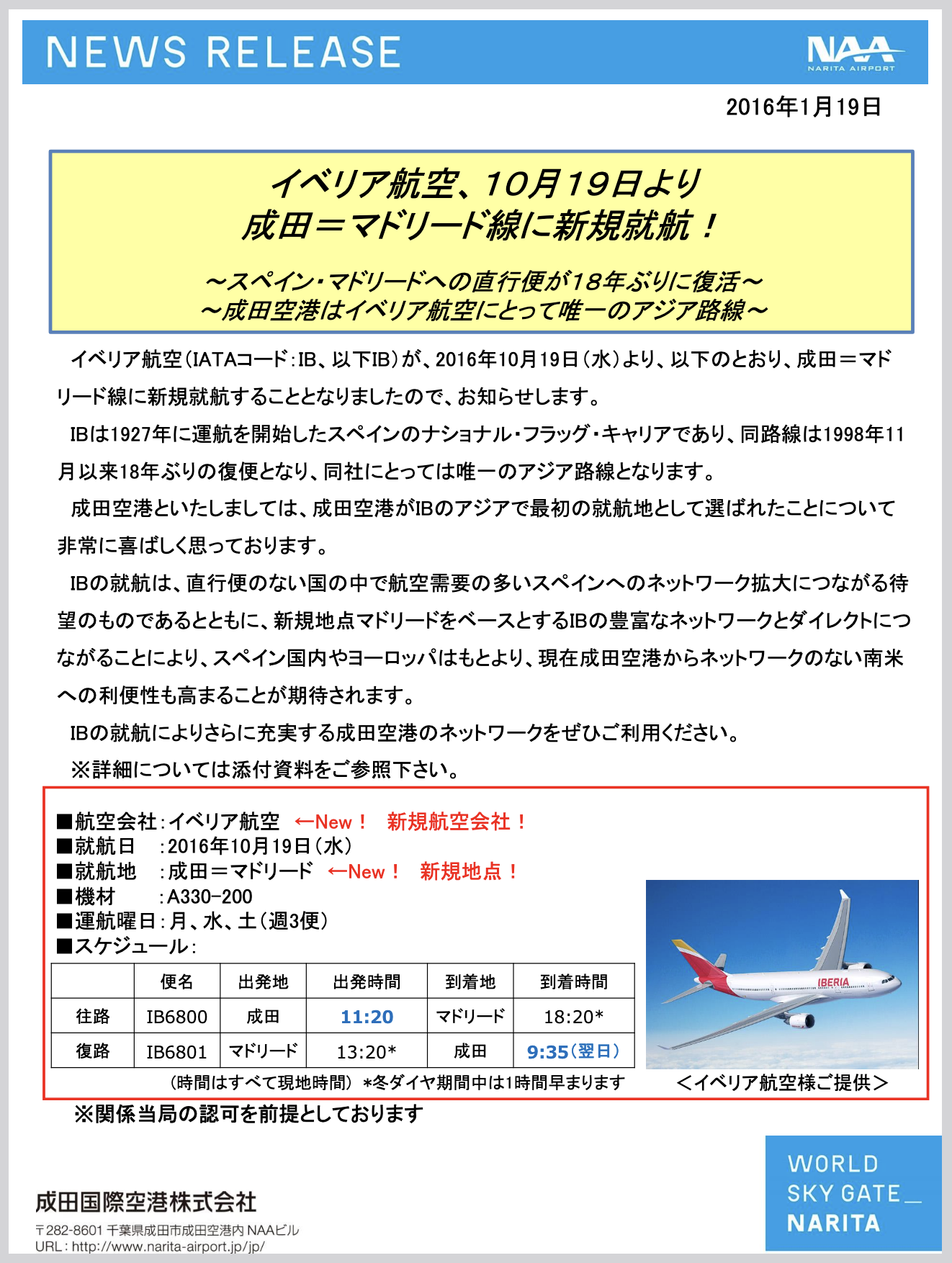 成田〜マドリード線は2016年就航