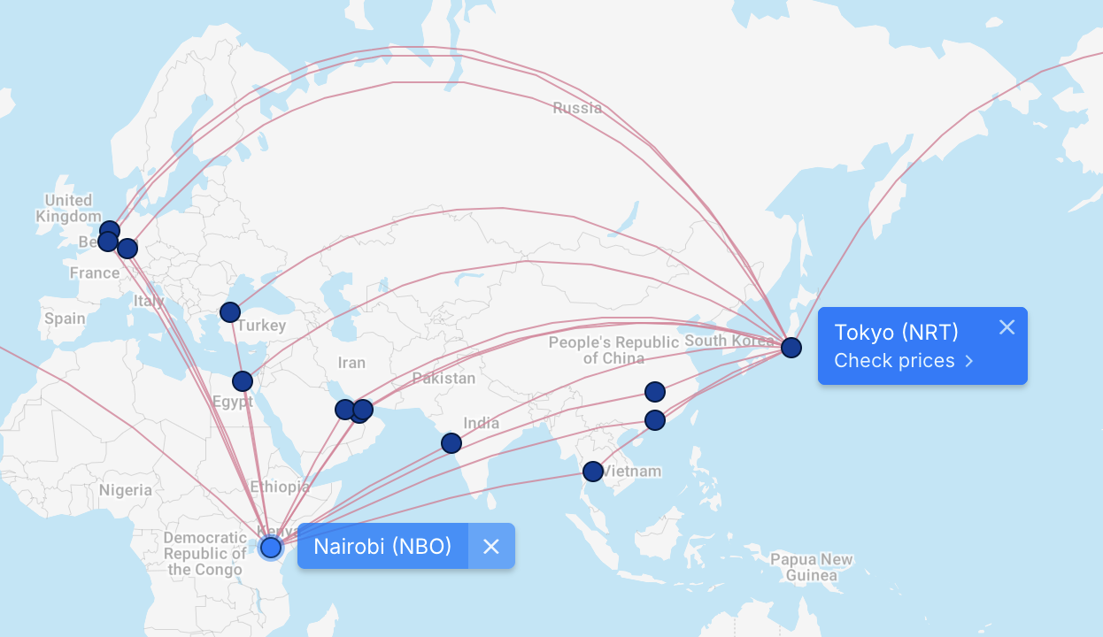 成田からナイロビの経由便候補