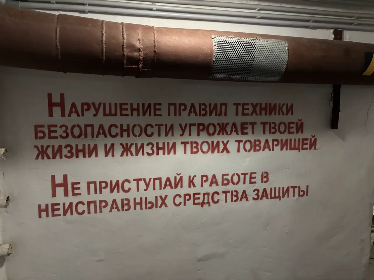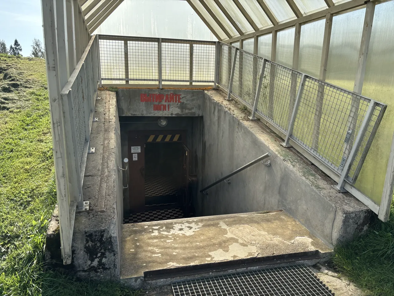 秘密基地らしく、全ては地下に造られている。基地への入り口上部には足を拭くようにロシア語の注意書きが残っている。もちろん現在は土足のままで入場可能だ。