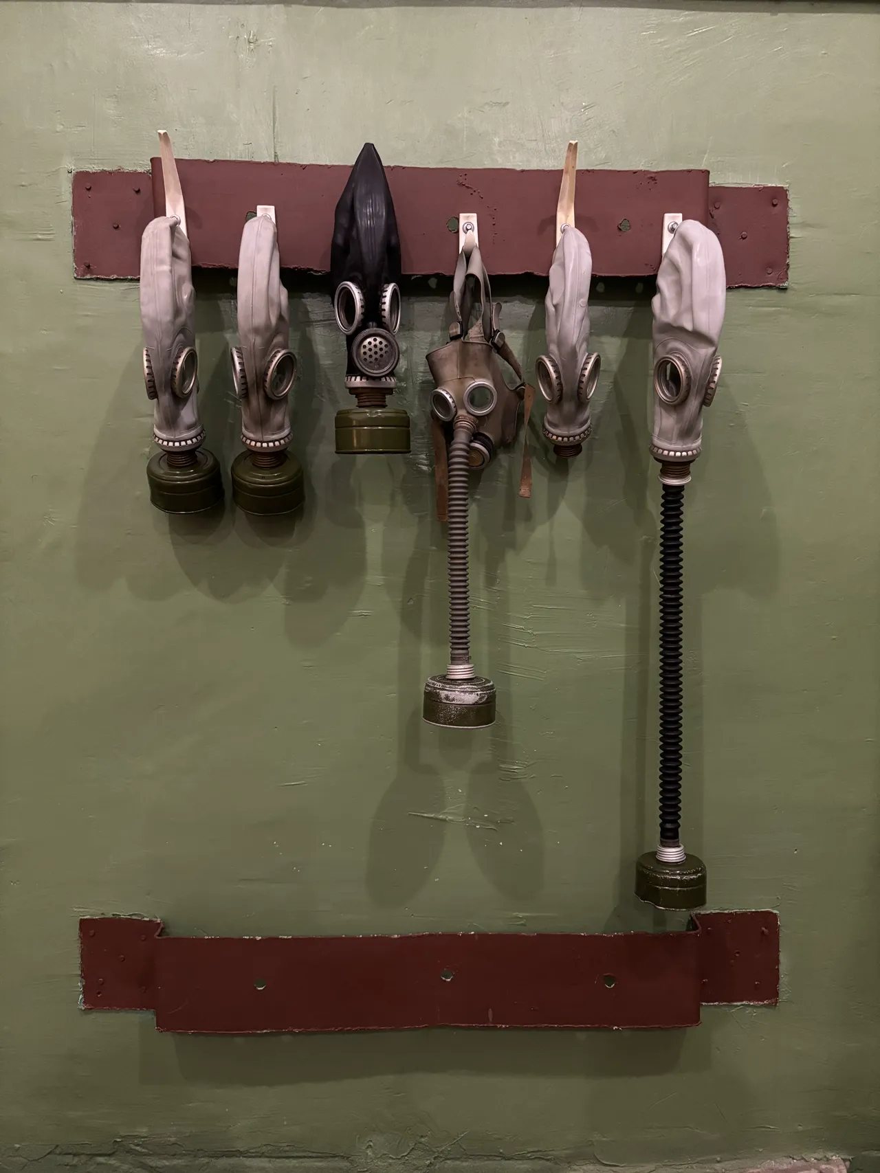 壁に掛けられたガスマスク
