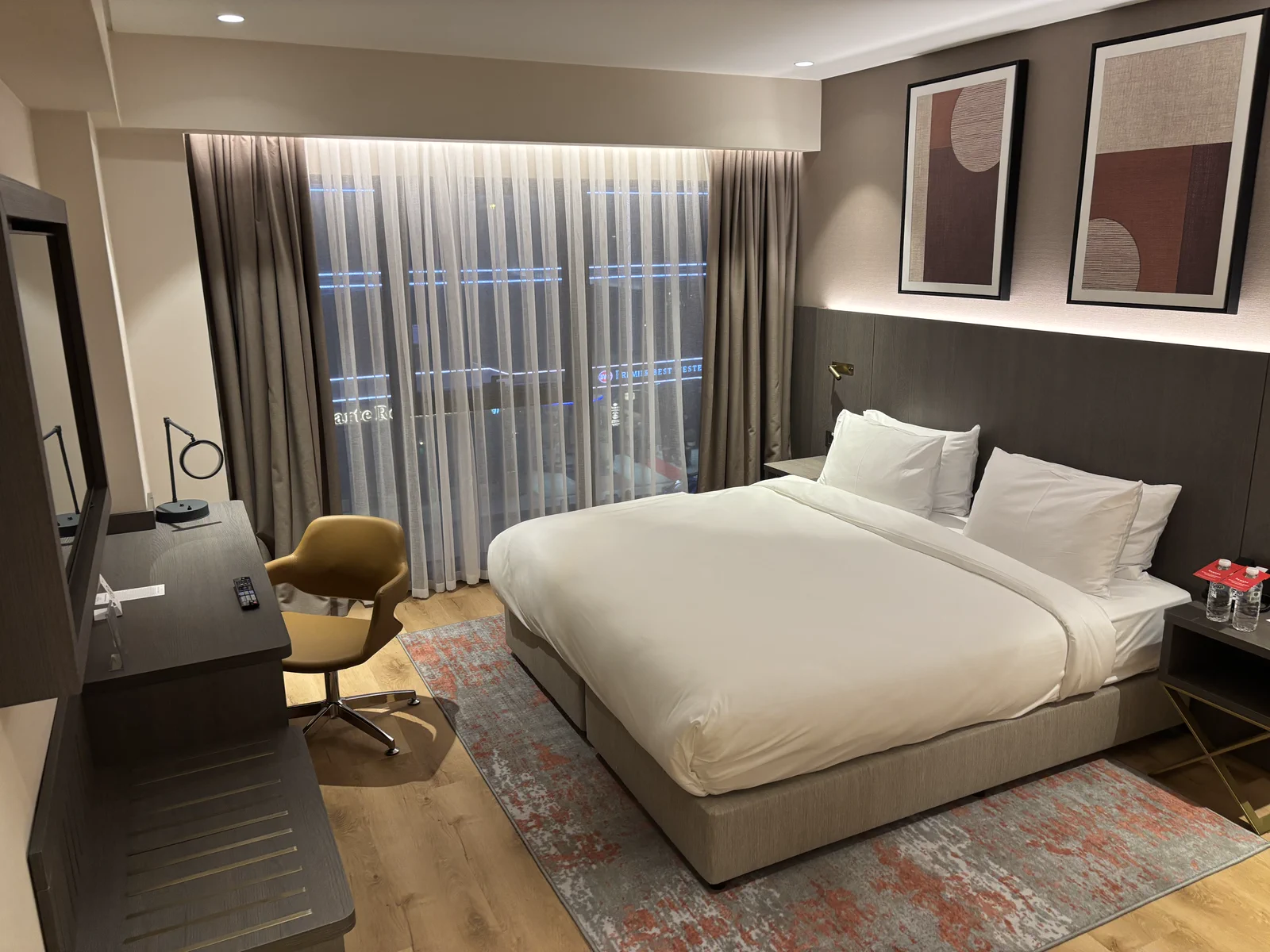 バスを下ろされた場所はRAMADAホテルのエントランスだった。めちゃくちゃちゃんとしたホテルじゃん!と驚く。無料で提供されるんだからもっとしょうもないところだと思っていた。RAMADAに泊まるのは夜行列車でモンテネグロに行った時以来だ。