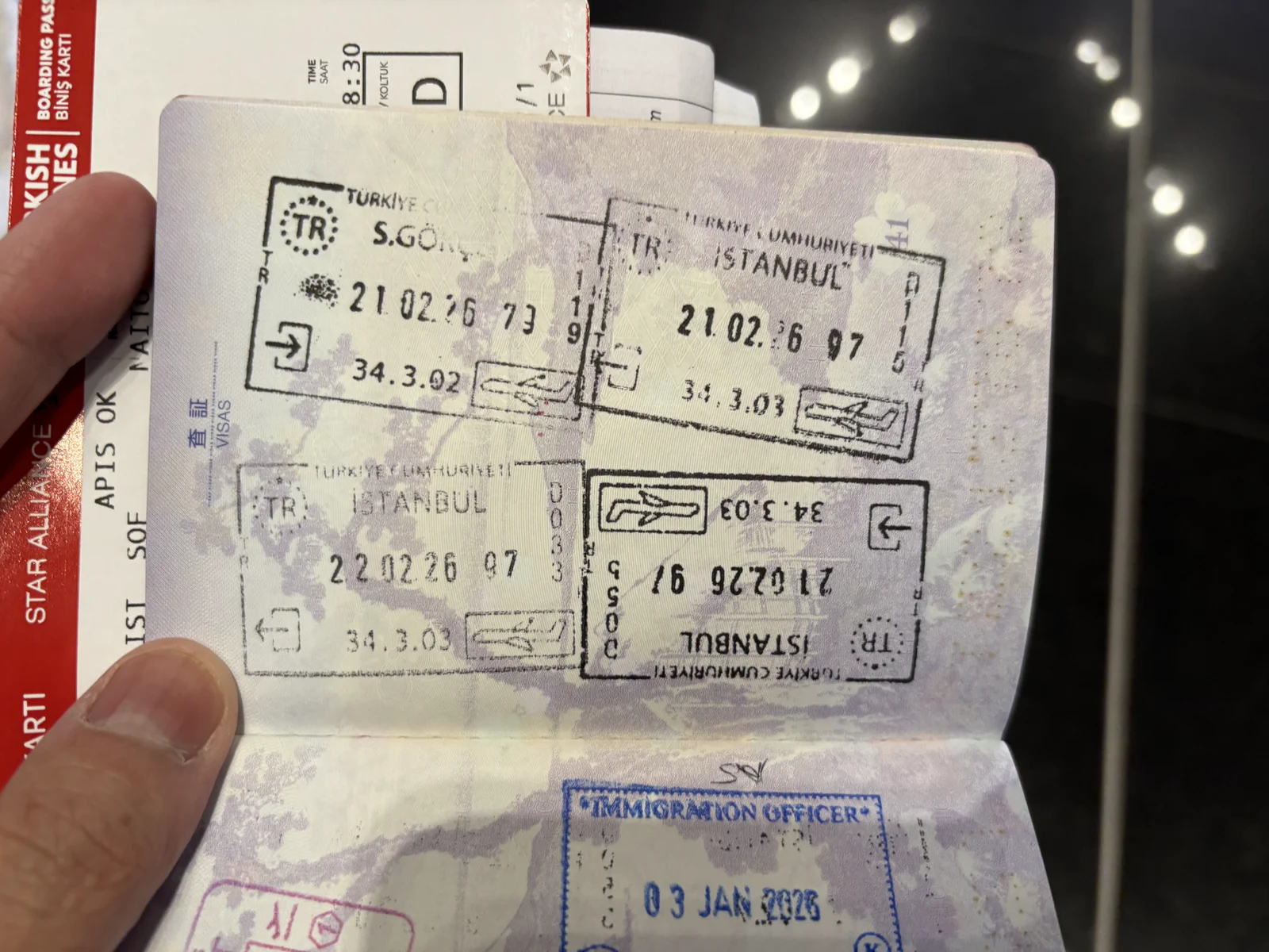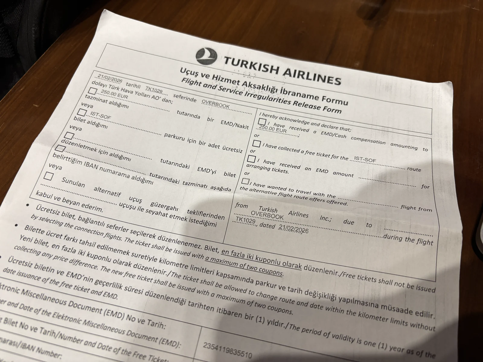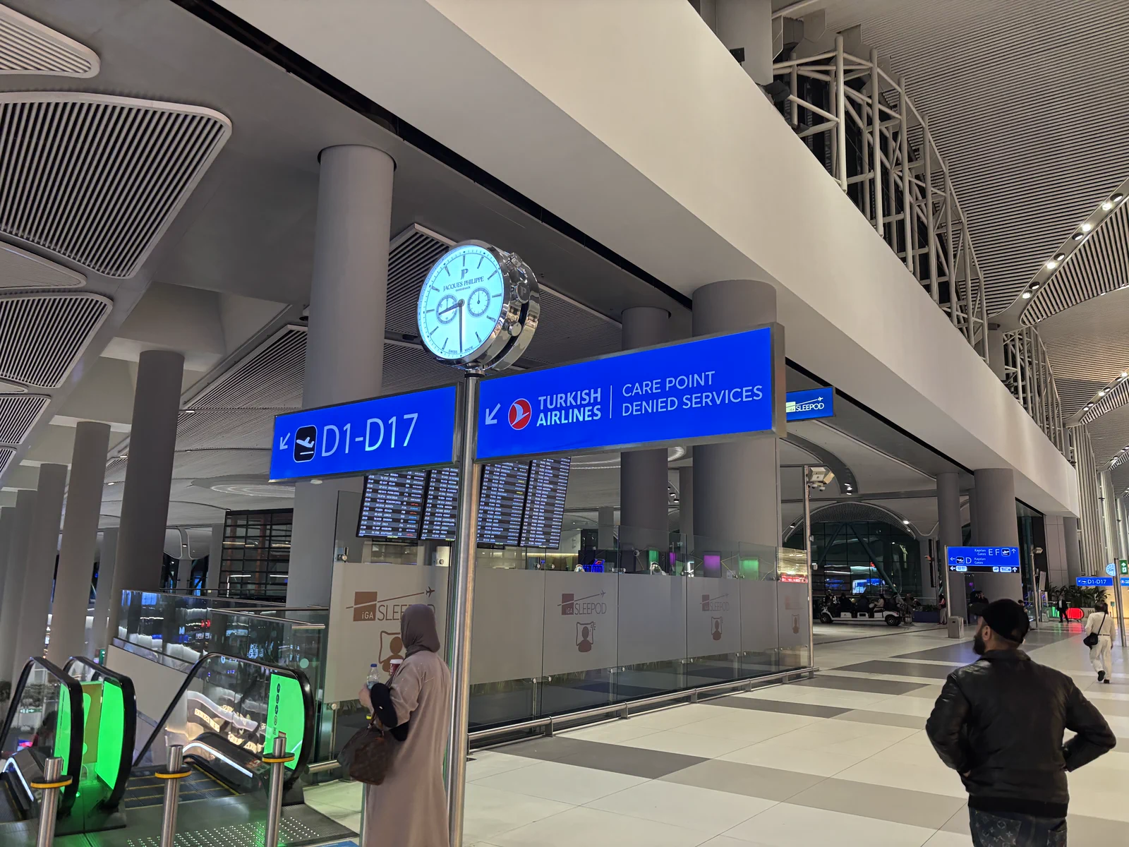 イスタンブール空港に到着し、キオスク端末を操作してこれから乗るフライトのチェックインをしようとするがうまくいかない。有人カウンターに行けというエラーが出てしまう。係員がそばに立っている別の端末に移動して係員に操作してもらったが同じエラーが出てくる。よくわからないのでカウンターに行ってみたところ、「オーバーブッキングなので乗れない」と言われてしまった。
