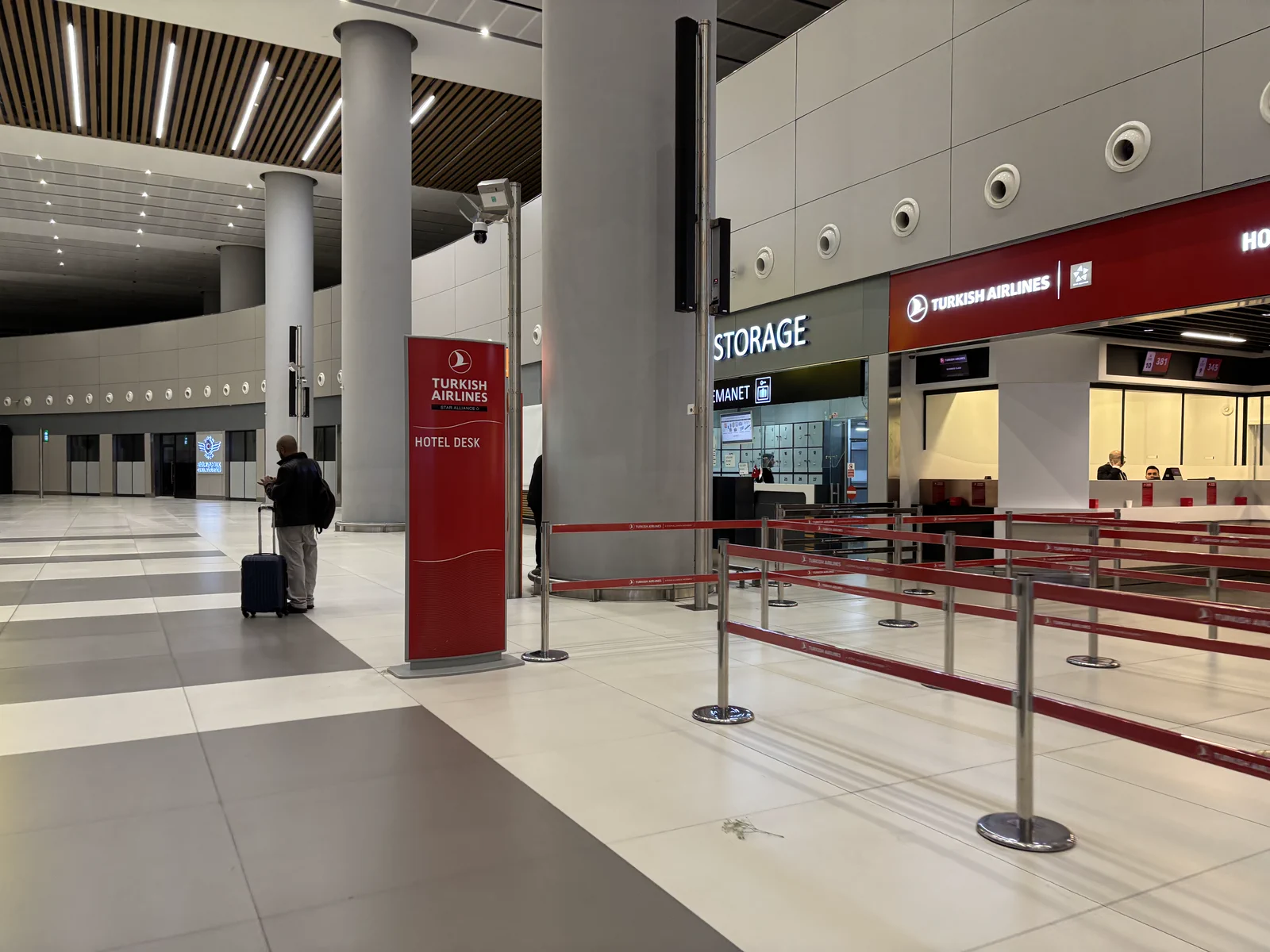 フロアの端にターキッシュエアラインのホテルデスクがある。ここが目的地だ。番号札をとって呼ばれたカウンターにさっきの書類を提出しよう。ホテル自体はその場ですぐに予約してくれる。シャトルバスがきたら案内するのでベンチで待っててくれと言われるので素直に従う。